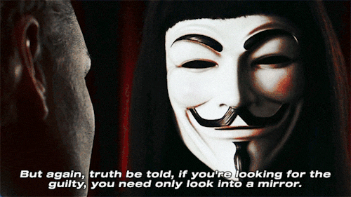 So if you’ve seen nothing, if the crimes of this government remain unknown to you, then I would suggest that you allow the 5th of November to pass unmarked. But if you see what I see, if you feel as I feel, and if you would seek as I seek, then I ask you to stand beside me, one year from tonight outside the gates of Parliament. And together, we shall give them a 5th of November that shall never, ever be forgot.V for Vendetta (2005)
